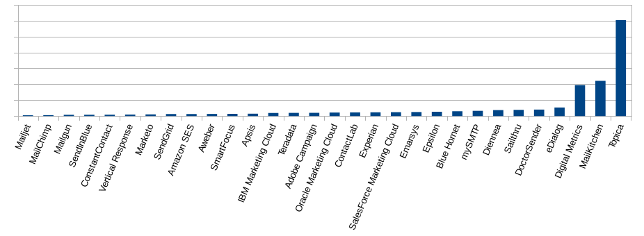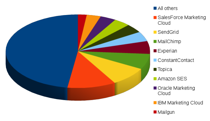 | 3 | MailChimp | 6.7% | 91% MC proper, 9% Mandrill (being phased out) | fantasibiksen.com (anonymous spammer) (<3%) |